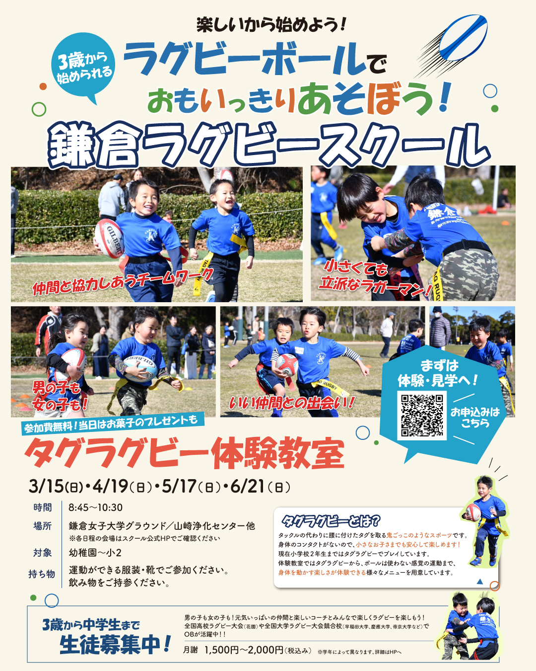 鎌倉ラグビースクール 幼稚園・保育園、小学1・2年生向け タグラグビー体験教室